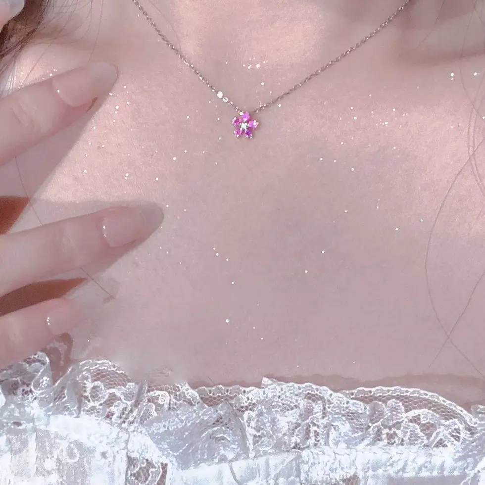 "Cherry Blossoms Falling" Rose Gold Flower Silver 925 Sterling Silver Necklace