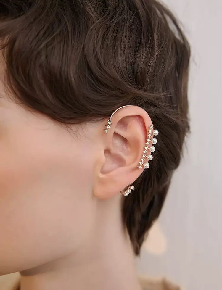 Silver Needle Star Pearl Ear Clips for Women High-end Design Ear Bone Clips